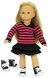 Get Your Low Price and Big Deals on Fits American Girl Dolls 3 Pc. Set of 18 Inch Doll Clothing, Fun Black/Hot Pink Striped Shirt, Black Skirt, & Doll High Tops