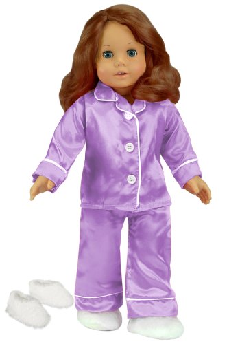 Get Your Discount And Cheap Price On 18 Inch Doll Clothing, Lavender Satin Doll Pj's with White Slippers, Doll Pajamas Set Fits American Girl Dolls